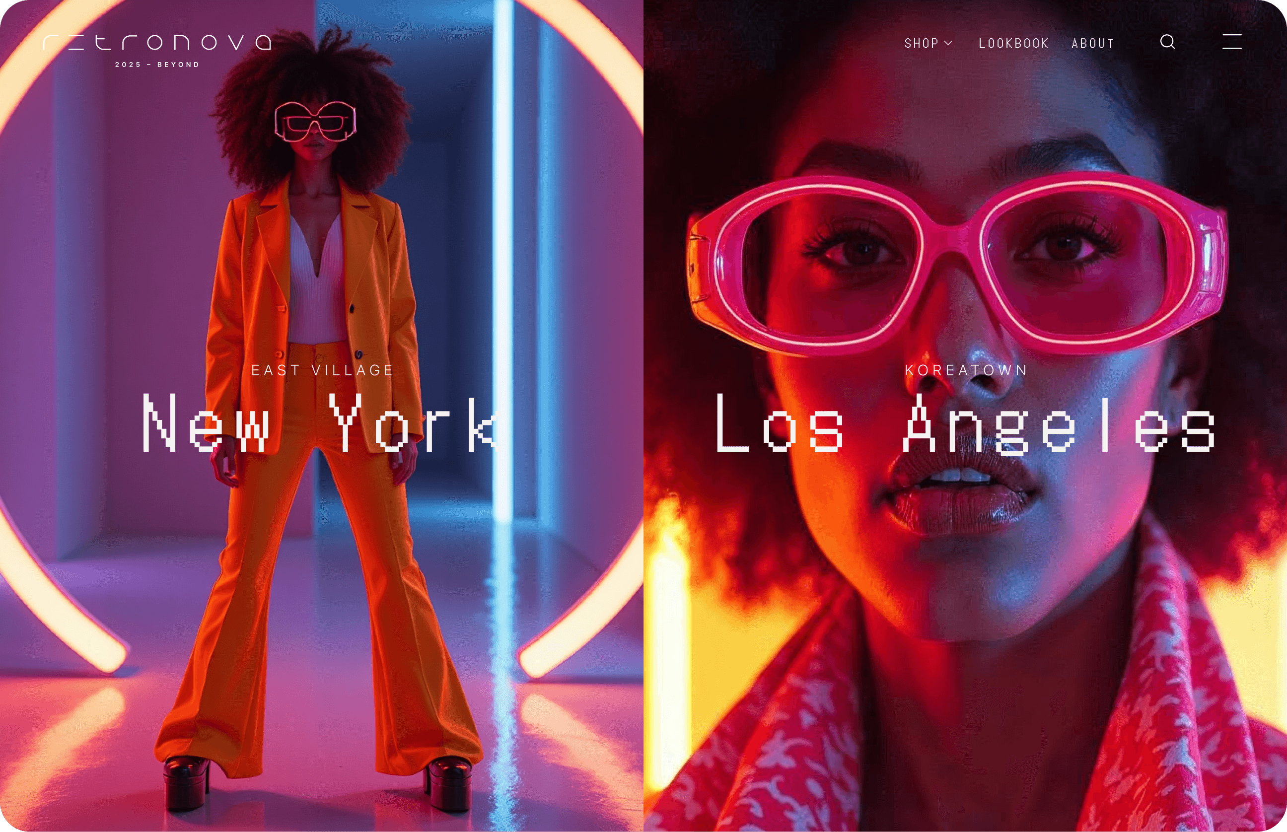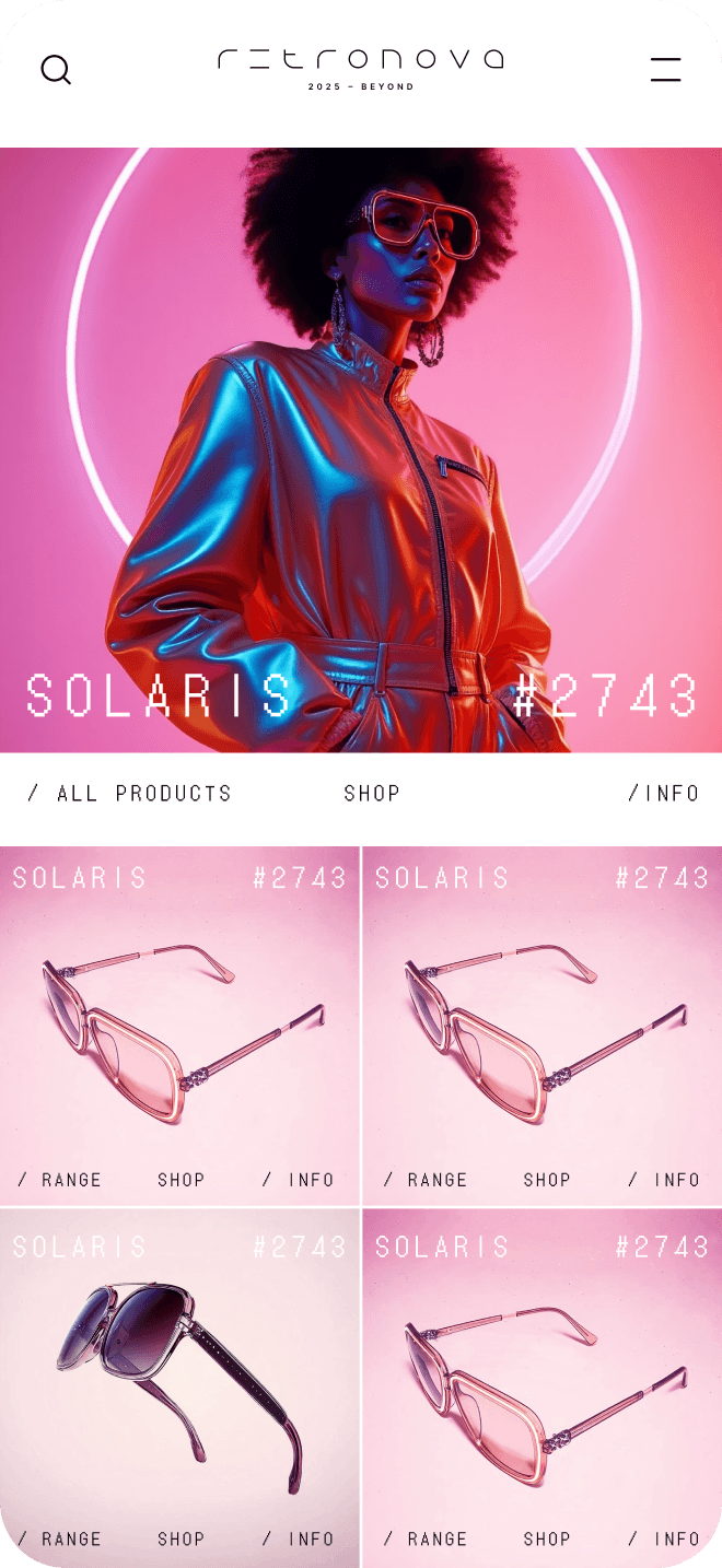 The art direction is retro-futuristic – borrowing from the past to inform the future. The brand is brought to life through light and motion, and created through environments, products and models.