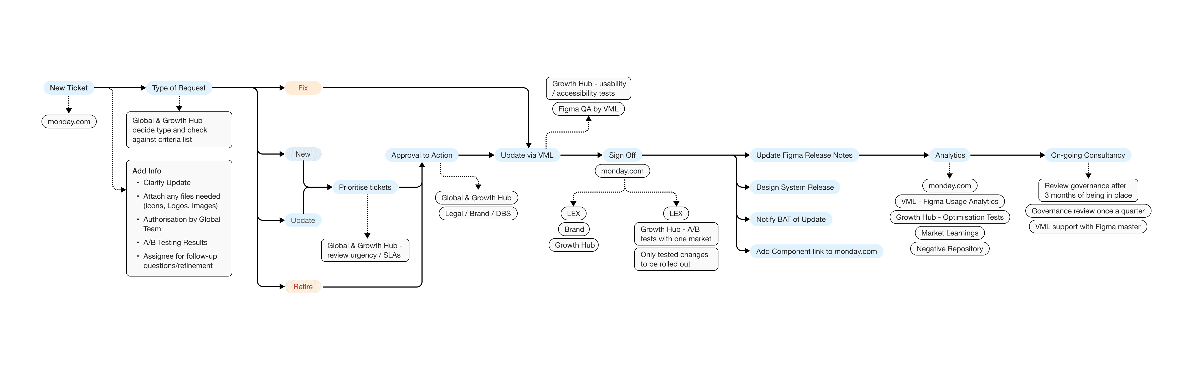 Once the design system was delivered and onboarded we began the process of defining a governance model for all teams to manage, maintain and evolve the design system going forward.